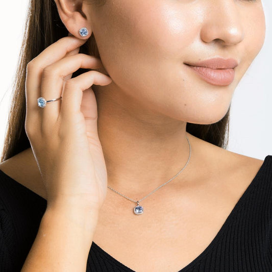 Clous d'oreilles Or blanc 9K Topaze bleu, 2 Pierres Ø7.3 mm