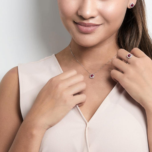 Clous d'oreilles Or blanc 18K Rhodolite Ø9 mm