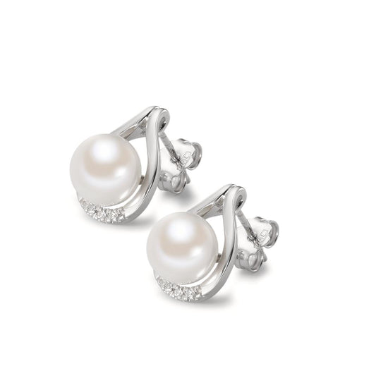 Pendant d'oreilles Or blanc 18K Diamant 0.03 ct, 6 Pierres, w-si perle d'eau douce blanc, 2 Perles, 7.5 mm