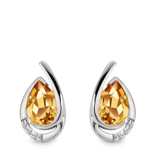 Clous d'oreilles Or blanc 18K Citrine cognac, 0.02 ct, 6 Pierres, brillant, w-si, Diamant 0.02 ct, 6 Pierres, brillant, w-si