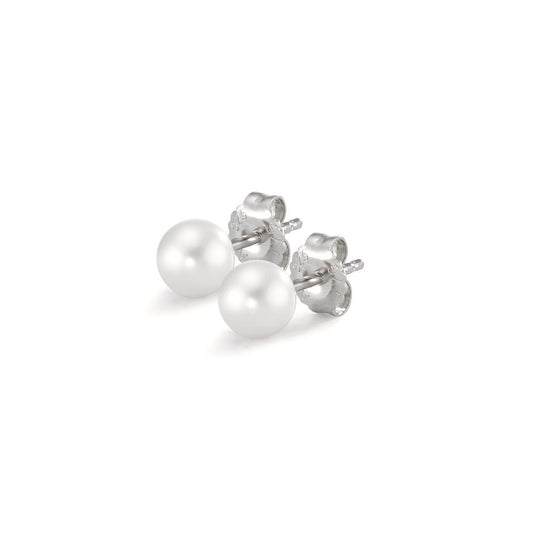 Clous d'oreilles Argent Rhodié perle d'eau douce blanc, 2 Perles, 5.5 mm