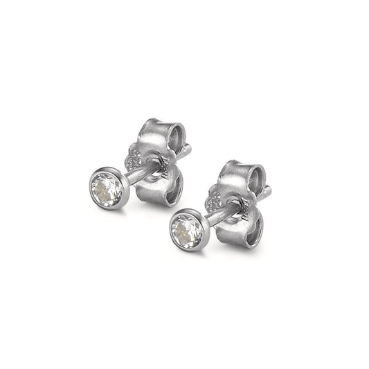 Clous d'oreilles Argent Zircone Rhodié Ø3 mm
