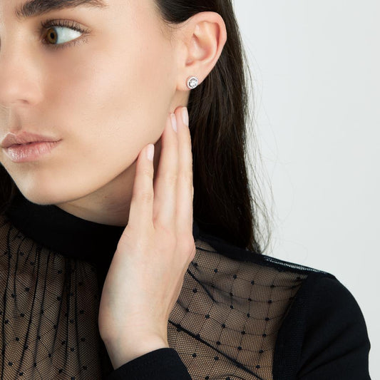 Clous d'oreilles Argent Zircone Rhodié Ø10 mm