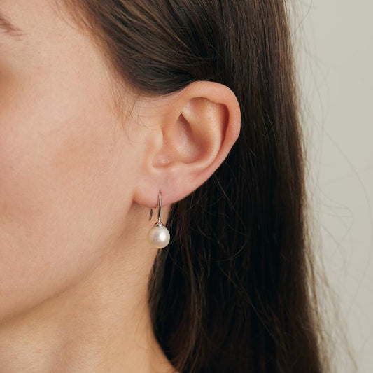 Pendant d'oreilles Argent Rhodié perle d'eau douce blanc, 2 Perles, 8.5 mm