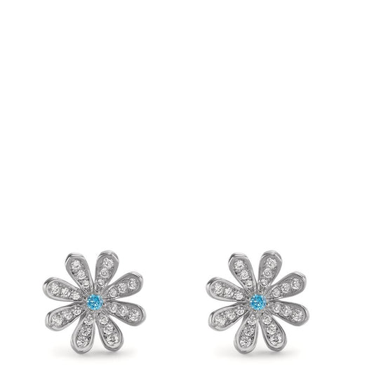 Clous d'oreilles Argent Zircone 50 Pierres Rhodié Fleur Ø10.5 mm
