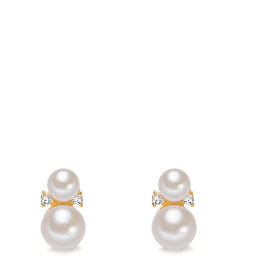 Clous d'oreilles Argent Zircone 4 Pierres jaune Plaqué or perle d'eau douce blanc, 4 Perles