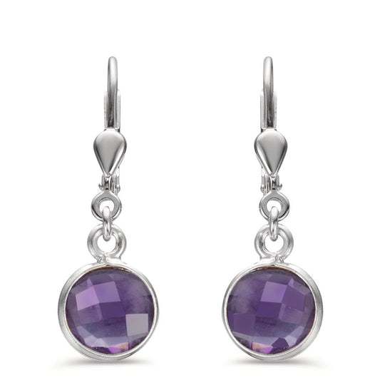 Pendant d'oreilles Argent Améthyste 2 Pierres Ø9 mm