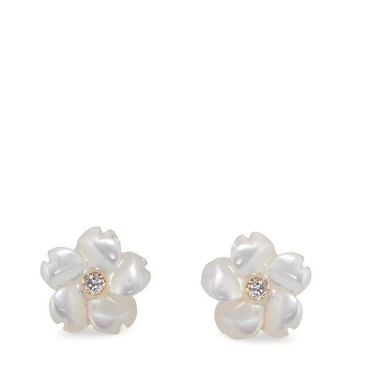 Clous d'oreilles Or jaune 9K Zircone nacre blanc Fleur Ø8 mm