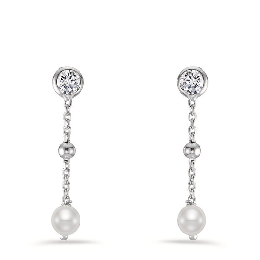 Pendant d'oreilles Argent Zircone Rhodié [shining Pearls], 2 Perles, 3 mm