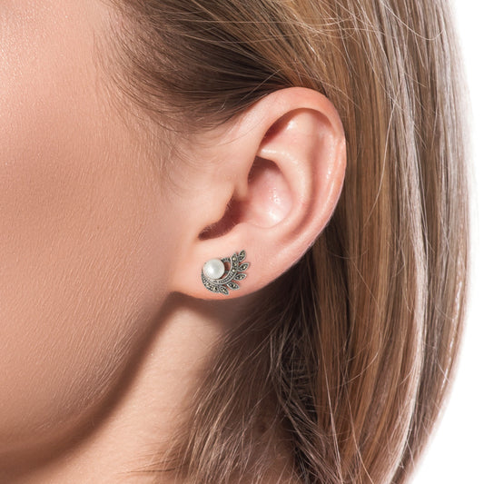 Clous d'oreilles Argent Rhodié [shining Pearls] blanc, 2 Perles, 6 mm