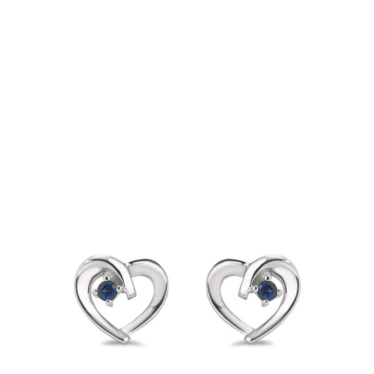 Clous d'oreilles Argent Saphir bleu, 2 Pierres Rhodié Coeur Ø10 mm