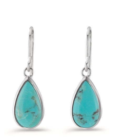 Pendant d'oreilles Argent Turquoise 2 Pierres Rhodié