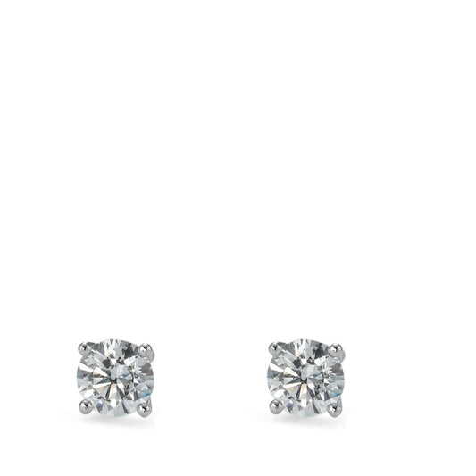 Clous d'oreilles Argent Zircone blanc, 2 Pierres, rond Rhodié Ø5 mm