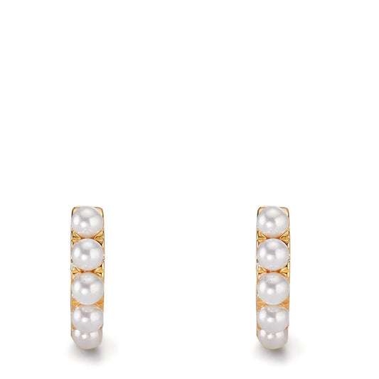 Créoles à charnières Argent jaune Plaqué or [shining Pearls] blanc, 10 Perles, 2.5 mm