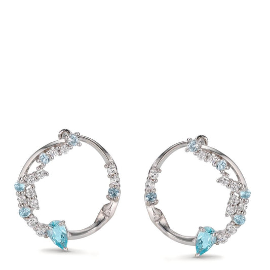 Créoles à charnières Argent Topaze 12 Pierres, Zircone blanc, 20 Pierres Rhodié