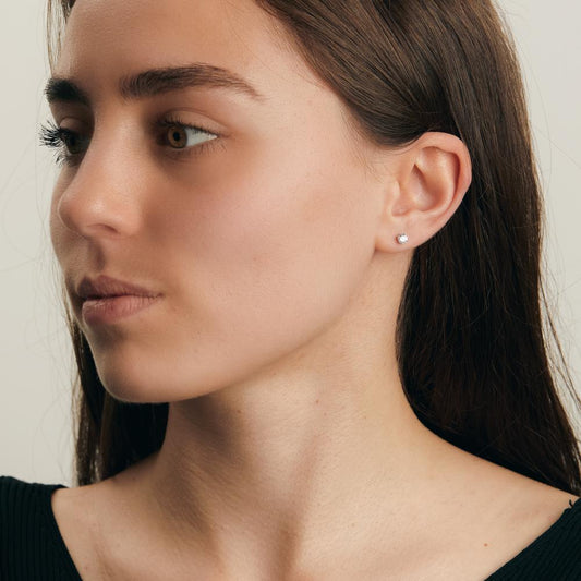 Clous d'oreilles Argent Zircone 2 Pierres Rhodié Ø4 mm