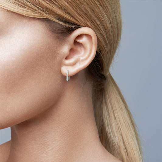 Créoles à charnières Or blanc 9K Zircone 20 Pierres