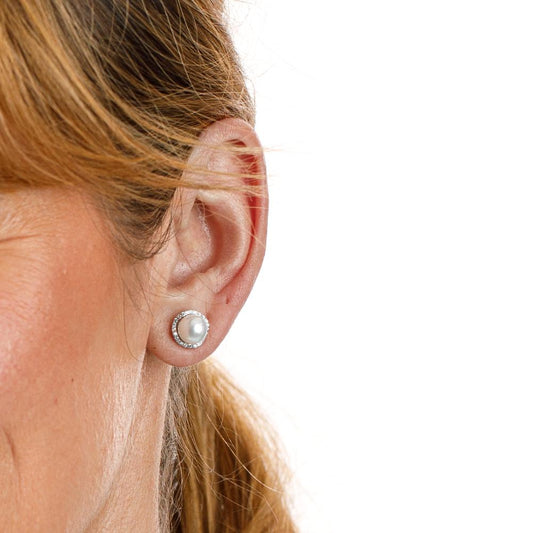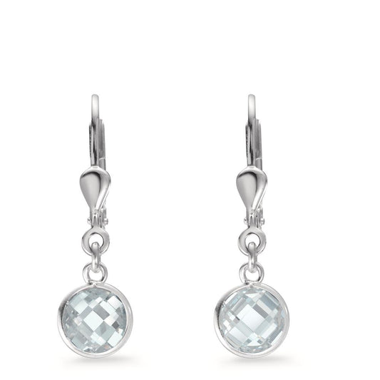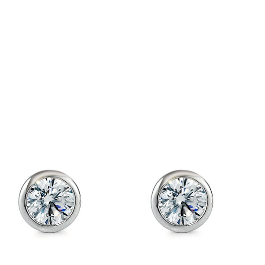 Pendant d'oreilles Argent Zircone blanc, 2 Pierres Rhodié Ø10 mm