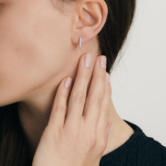 Boucle d'oreille glissante Argent Zircone 12 Pierres Rhodié