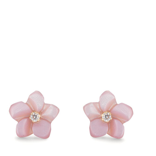 Clous d'oreilles Or jaune 9K Zircone nacre rose Fleur Ø8 mm