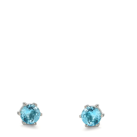 Clous d'oreilles Argent Topaze bleu, 2 Pierres Rhodié Ø4.5 mm