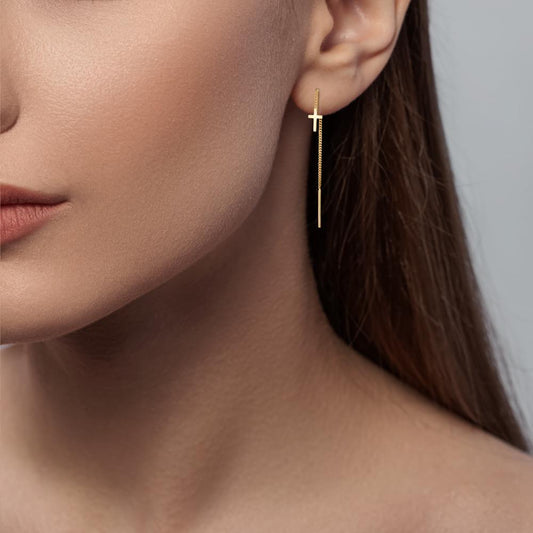 Boucles d'oreilles pendantes Or jaune 9K Croix