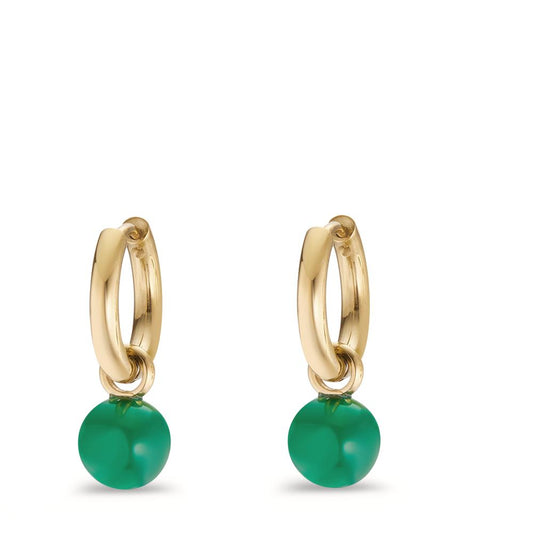Créoles avec pendentif Acier inoxydable Agate vert, 2 Pierres jaune PVD