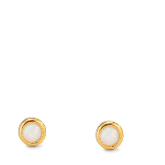 Clous d'oreilles Argent [synth. Opal] blanc, 2 Pierres jaune Plaqué or Ø4.5 mm