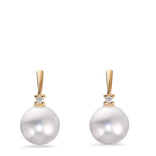 Clous d'oreilles Or jaune 18K Diamant 0.02 ct, 2 Pierres, w-pi1 perle d'eau douce blanc, 2 Perles, 7 mm