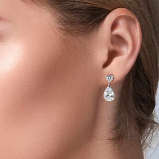 Pendant d'oreilles Argent Zircone Rhodié Coeur