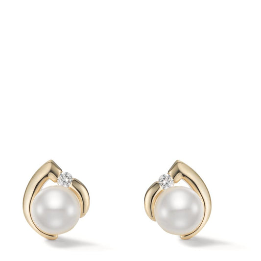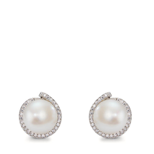 Clous d'oreilles Argent Zircone blanc Rhodié perle d'eau douce blanc, 2 Perles, 9.5 mm Ø13 mm