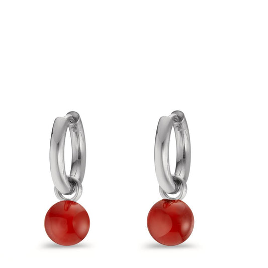 Créoles avec pendentif Acier inoxydable Agate rouge, 2 Pierres