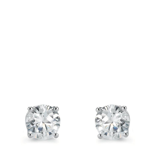 Clous d'oreilles Argent Zircone blanc, 2 Pierres, rond Rhodié Ø6.5 mm