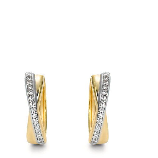 Pendant d'oreilles Or jaune 9K Zircone 6 Pierres Bicolore