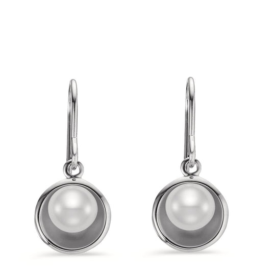 Pendant d'oreilles Argent Rhodié perle d'eau douce blanc, 2 Perles, 6 mm