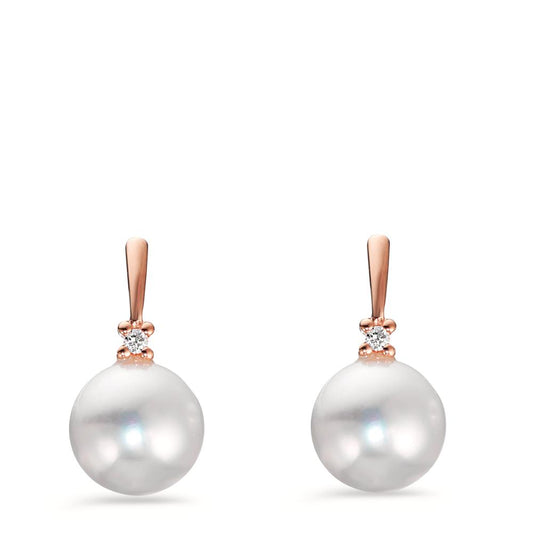 Clous d'oreilles Or rouge 18K Diamant 0.02 ct, 2 Pierres, w-pi1 perle d'eau douce blanc, 2 Perles, 7 mm