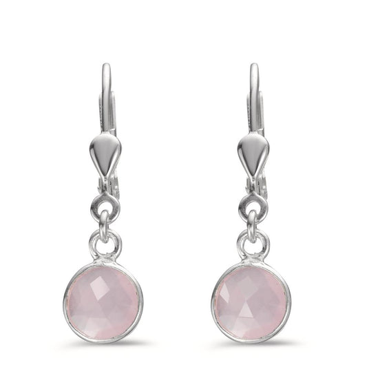 Pendant d'oreilles Argent Calcédoine rose, 2 Pierres Ø7 mm
