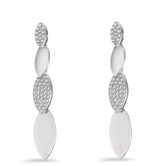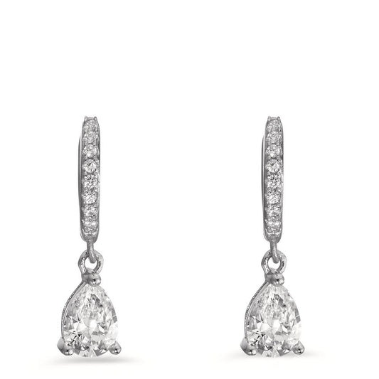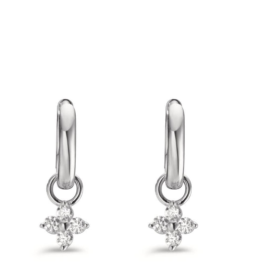 Pendant d'oreilles Argent Zircone aqua, 4 Pierres Rhodié