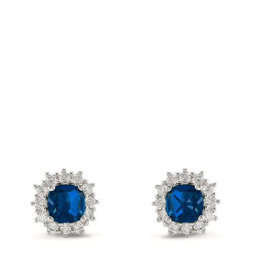Clous d'oreilles Argent Zircone bleu, 26 Pierres Rhodié Ø10.5 mm