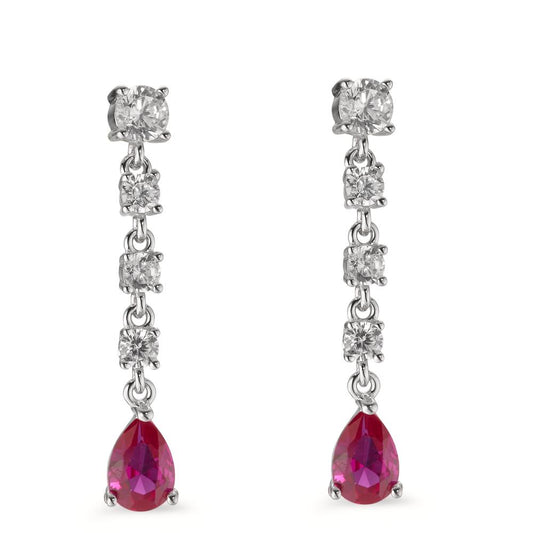 Pendant d'oreilles Argent Zircone rose, 10 Pierres Rhodié