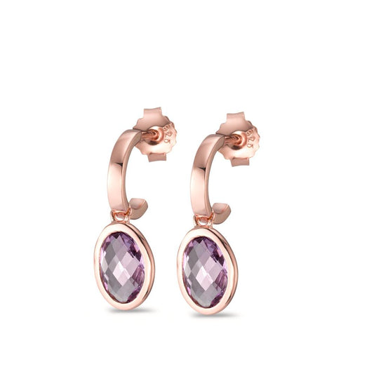 Créoles avec pendentif Argent Améthyste violet, 2 Pierres rosé Plaqué or