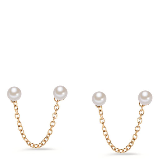 Pendant d'oreilles Acier inoxydable jaune PVD [shining Pearls] blanc, 2 Perles, 3 mm