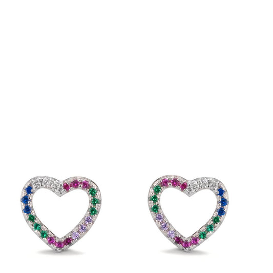 Clous d'oreilles Argent Zircone coloré Rhodié Coeur Ø9.5 mm