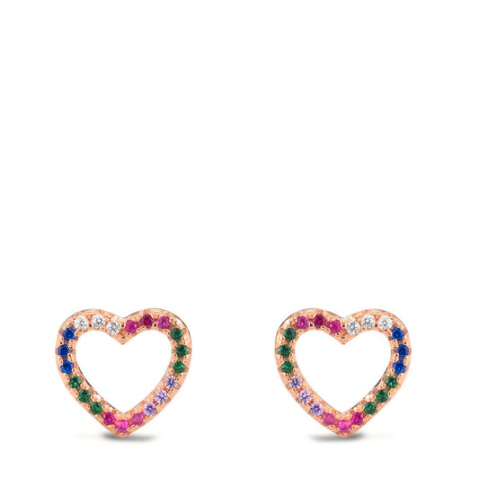 Clous d'oreilles Argent Zircone coloré rosé Plaqué or Coeur Ø9.5 mm