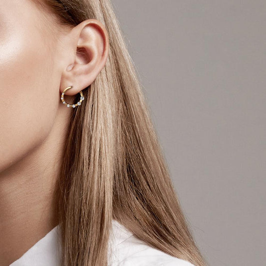 Créoles à charnières Or jaune 9K Zircone 14 Pierres