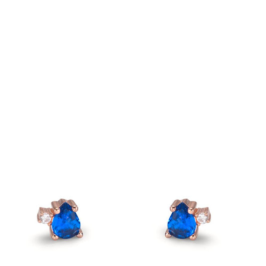 Clous d'oreilles Argent Zircone bleu saphir, 4 Pierres rosé Plaqué or Ø4 mm