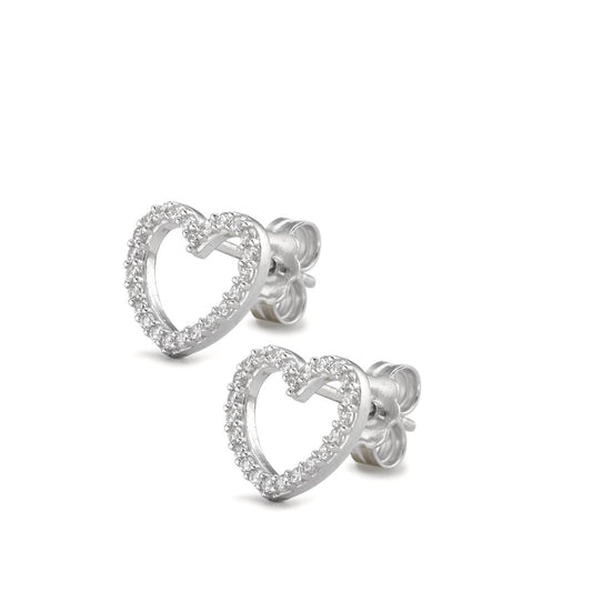 Clous d'oreilles Argent Zircone Rhodié Coeur Ø8 mm