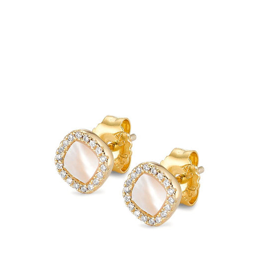 Clous d'oreilles Argent Zircone jaune Plaqué or nacre blanc Ø7 mm