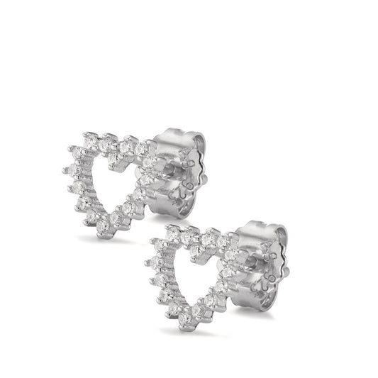 Clous d'oreilles Or blanc 18K Zircone Coeur Ø11 mm
