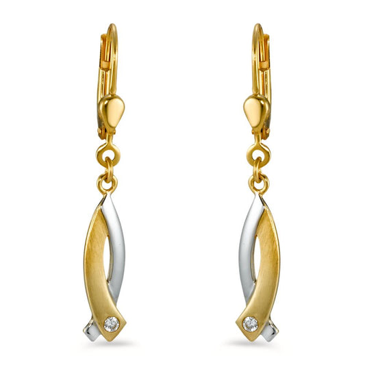 Pendant d'oreilles Or jaune 18K Zircone 2 Pierres